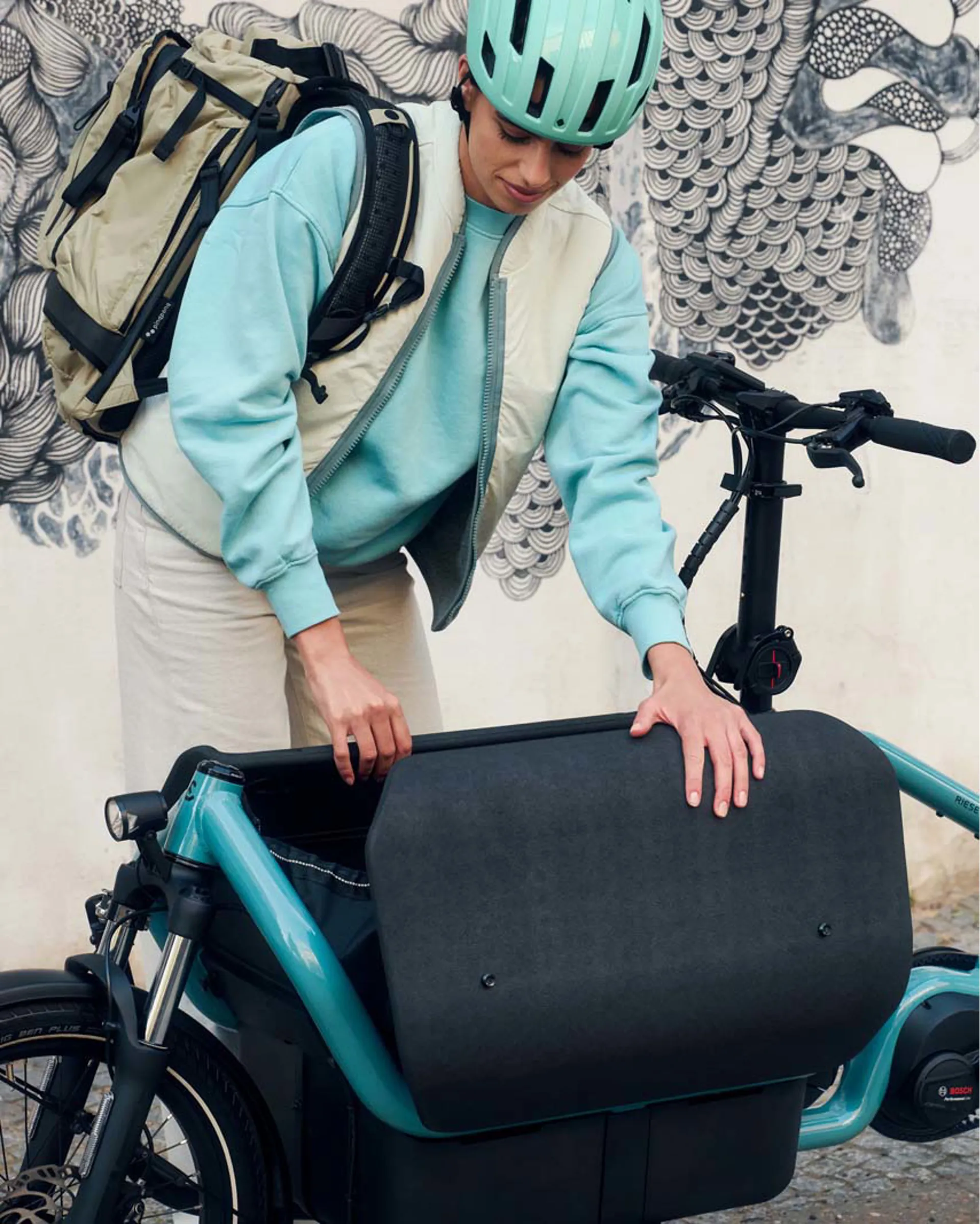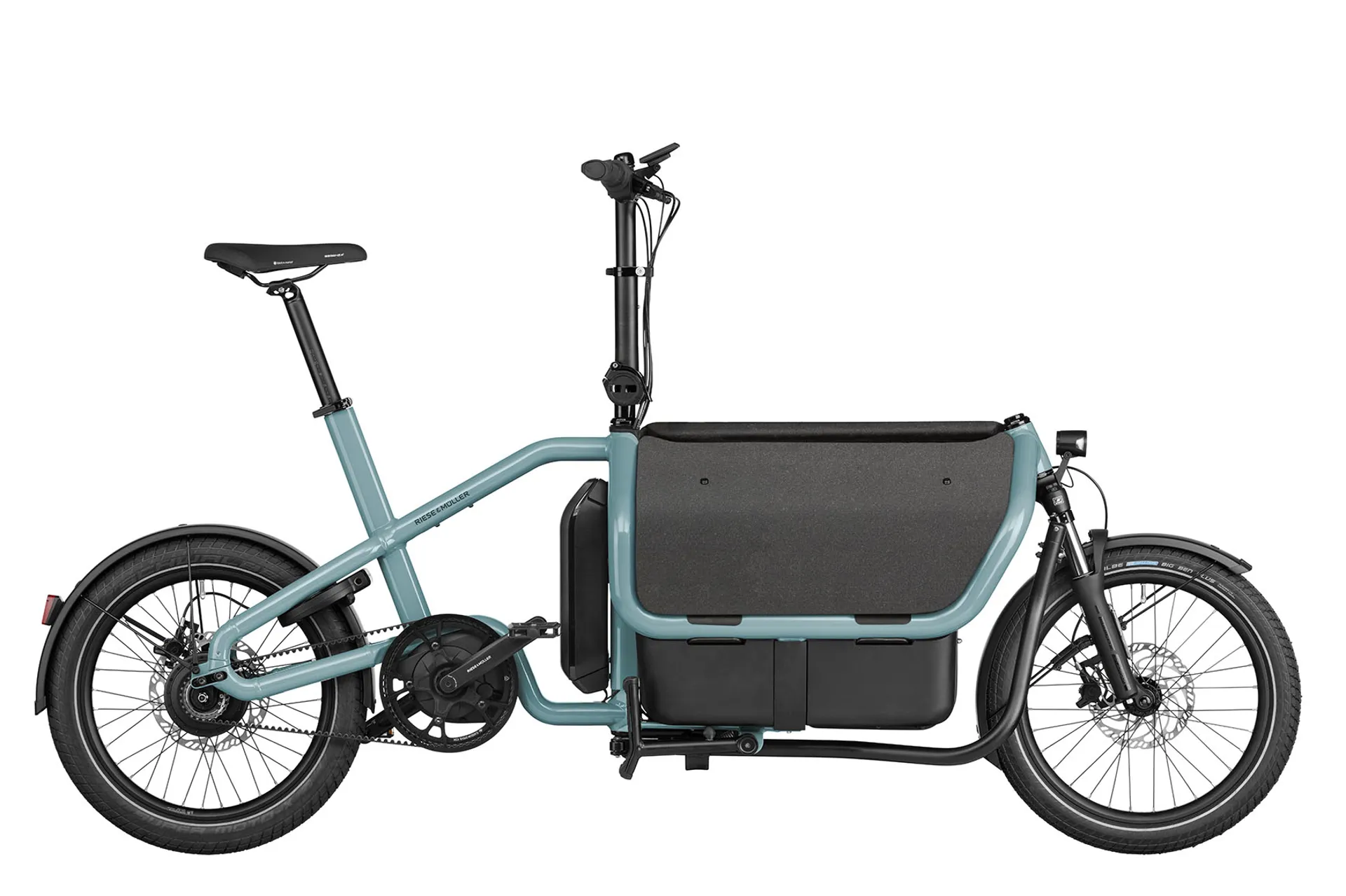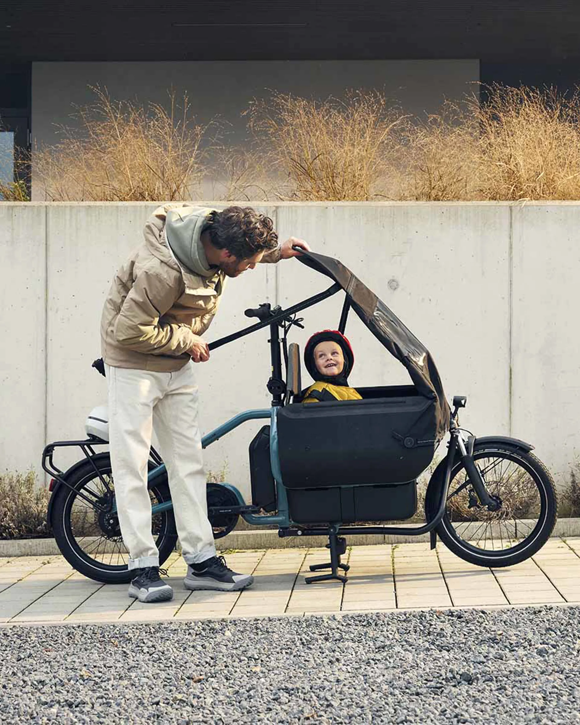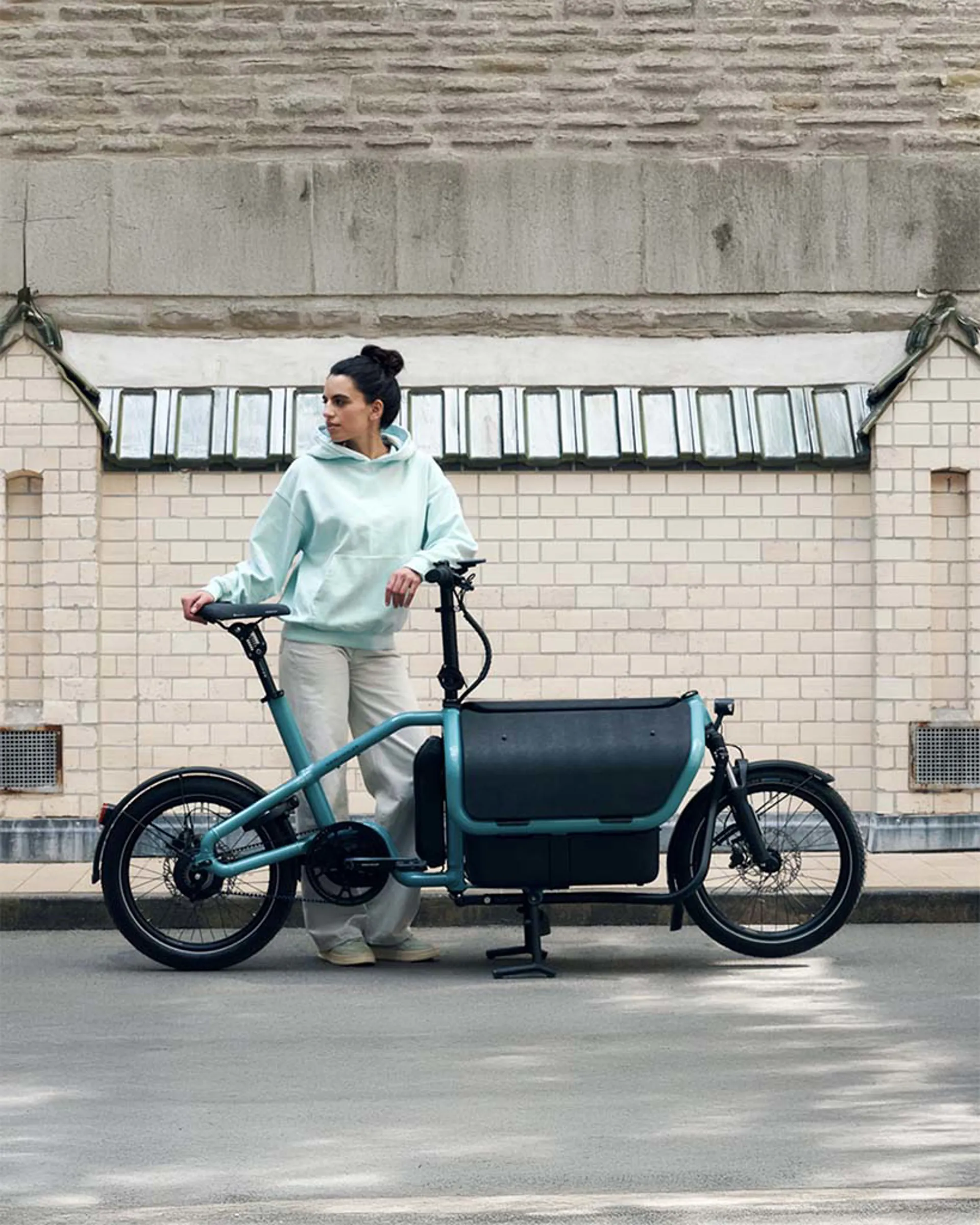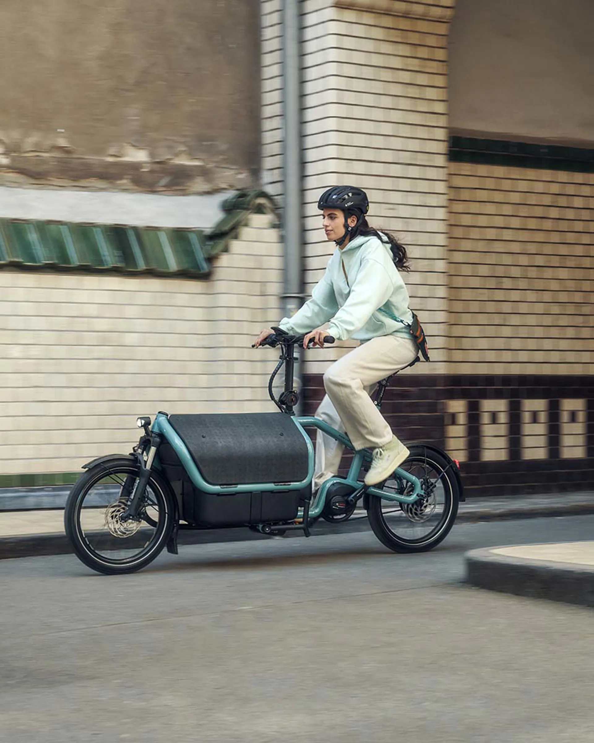 Minimal parking space and tight curves: you no longer have these worries with the Carrie. You can now ride around town with ease, just like on a normal bike, thanks to its 43 cm slim Basic Box. And, with a compact length of just two metres, there is always space for the Carrie in every bike store room.