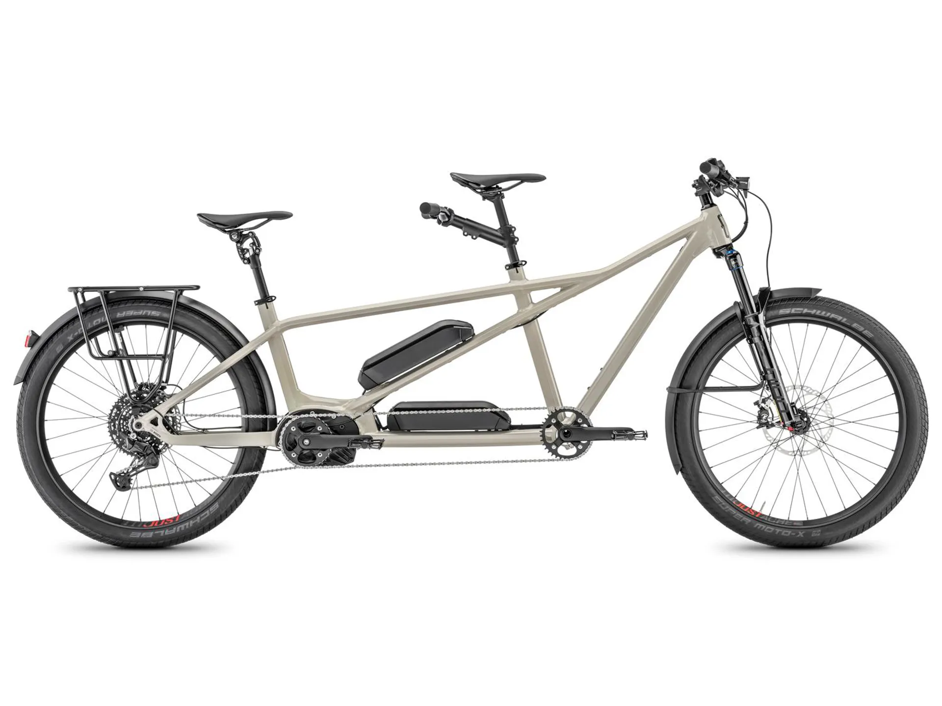 Handlebar: Front: Moustache, ergonomic, alloy, 760mm, 9° backsweep // Rear : Moustache, ergonomic, alloy, 680mm, 9° backsweep