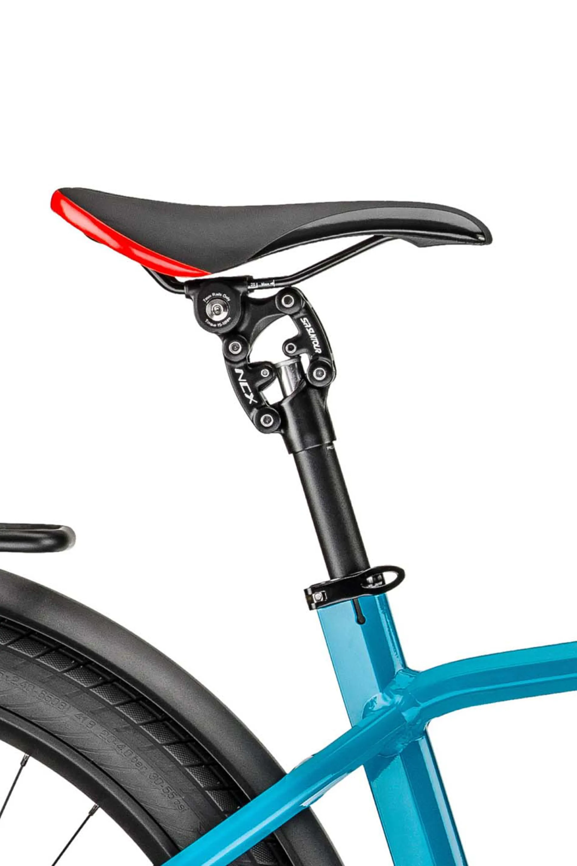 Seatpost: Front: Moustache, alloy, 27.2mm with 31.6mm adaptor, 350mm // Rear: Suntour NCX, suspension seatpost with 50mm of travel, parallelogram system 350mm x 27.2mm with 31.6mm adaptor