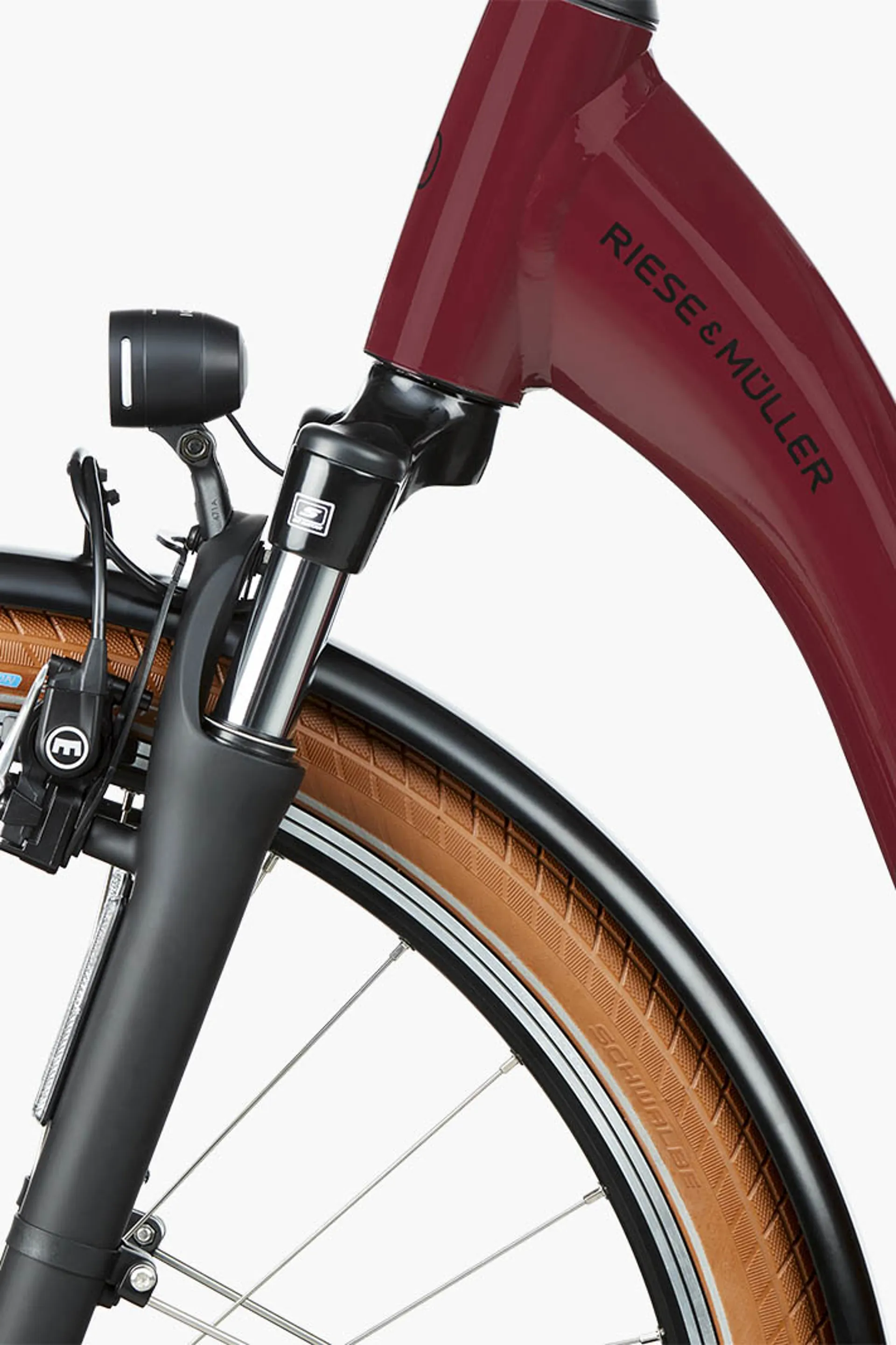 The carbon belt drive offers a wonderfully smooth ride, at the same time being low-maintenance and reliable. Dirt and oil stains, as was the case with chain drives, are now a thing of the past. The twist shift grip and Magura hydraulic rim brakes guarantee comfortable and safe everyday cycling. And the standard Abus frame lock is just as reliable.