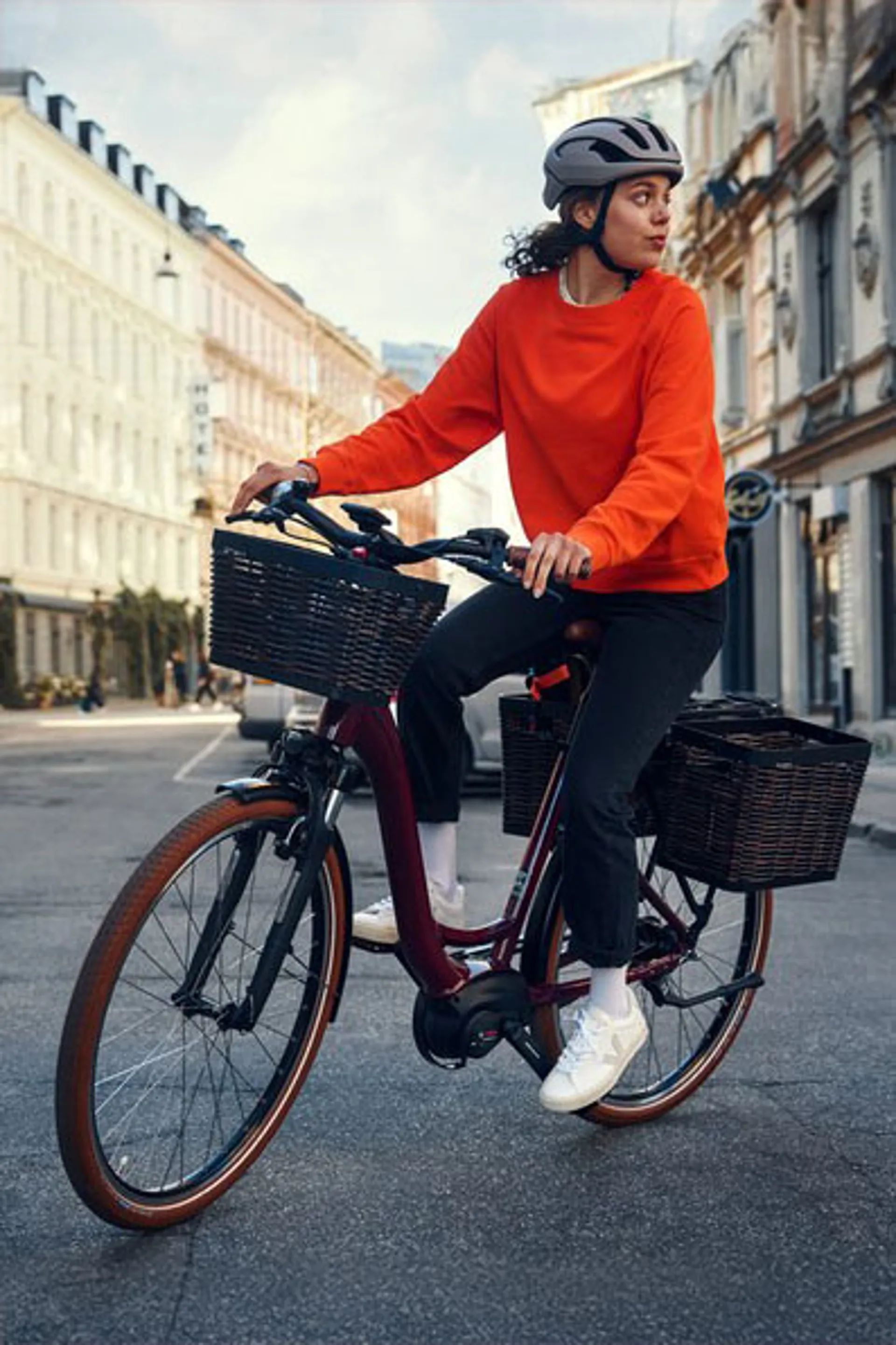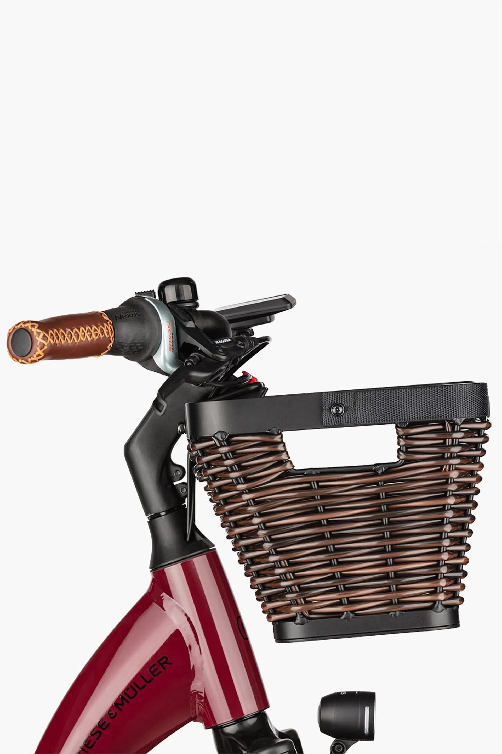 The perfectly fitting, optional baskets have been developed with a click system specifically for the Swing. Sturdy, weatherproof and with a sophisticated rattan look, they complete the image of a modern roadster. The front basket, which holds approximately 12 litres, can be loaded with up to 5 kg. The carrier baskets can be fitted to the right, left, or both sides simultaneously, similar to panniers. This leaves the carrier with MIK HD system free to be used for other things. Their large storage space of approx. 22 litres was designed to carry shopping bags, each weighing up to 7 kg.
