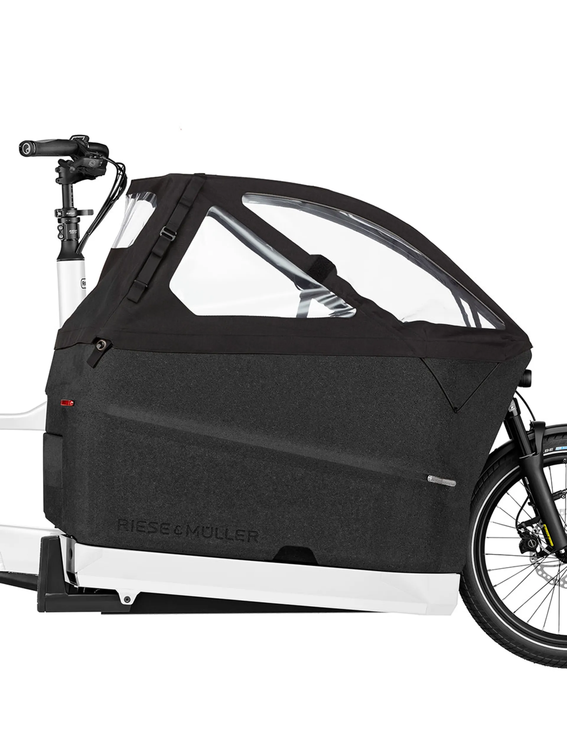 There is space for up to three children in the 100% recyclable EPP box produced with zero emissions. And their safety is top priority: the child seats all feature 5-point seat belts, while the side impact protection provides outstanding safety in urban traffic and the central railing doubles as a grab handle. Optional accessories, such as the all-season child cover or tarpaulin, are produced in a resource-efficient manner, and the child seats are made of 100% recycled material. So now you can transport your children worry-free.